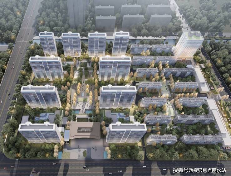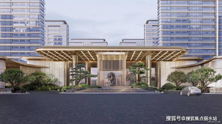 建筑美学:小高层顶部选取古代宋式官帽元素设计,寓意仕运亨通;叠墅以米白色为基调,局部深灰点缀,香槟金铝条点缀玻璃光感界面