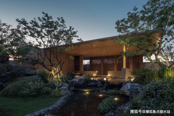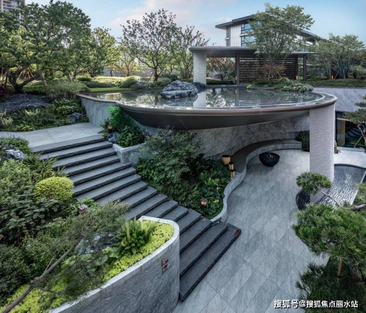 社区内部采用30%高绿化率,以"隐逸东方,藏引繁华谧境"为理念,打造无界园林重构城市边际美学。