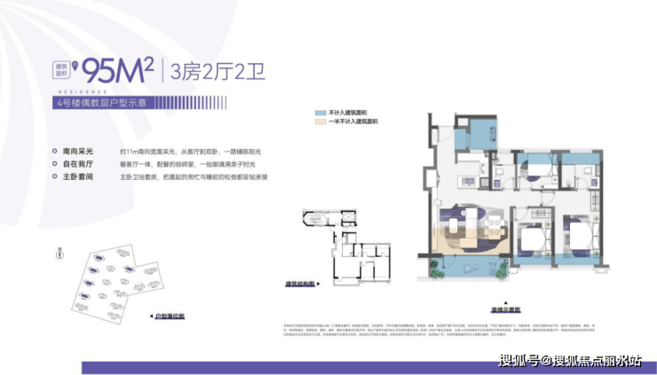 2、建面约95㎡户型则是软件谷区域内唯一做横厅三房的产品,不仅有约5.4米的灵活横厅,更有尺度舒适的大三房以及双卫设计,满足全龄段家庭成长需求;