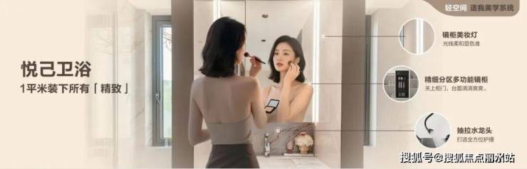 “悦己卫浴”更戳中精致生活的收纳痛点——美妆灯、镜柜集成收纳模块一站式配齐,1m² 就能满足女主人美妆需求;