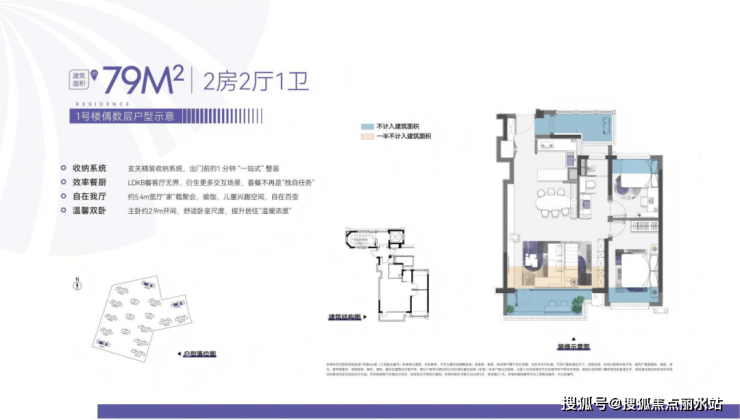 1、近16年未见的建面约79㎡全功能小户型样板间尺度震撼,约5.4米客厅开间,未来可打造2+X房,实际使用感受堪比常规建面约89㎡的户型;