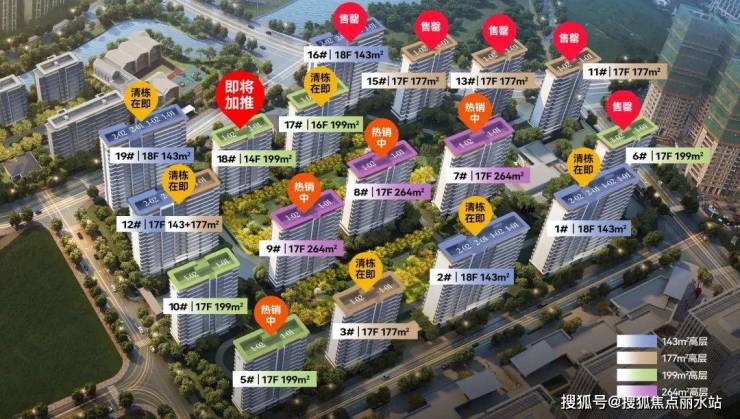 即将加推的18#,为建面约199㎡大平层,层高只有14层,是整个小区里面楼层最低的楼栋了。