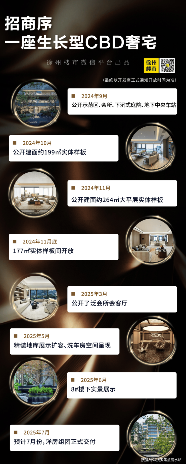 2024年9月至今,项目接连公开了星级会所、实景示范区、下沉式庭院、地下中央车站、约199㎡实体样板、264㎡大平层实体样板、泛会所会客厅、精装地库展示扩容、8#楼下景观组团…