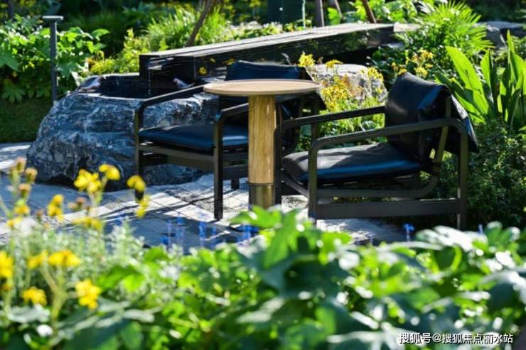 在这里,项目通过水岸会客厅、自然认知学堂、疗愈花园、Chill露营地、叠水岛屿五大景观,为业主缔造沉浸式的互动空间,檐下饮茶、植物乐园的探秘、楼下的野奢剧场……都可以在这里进行。