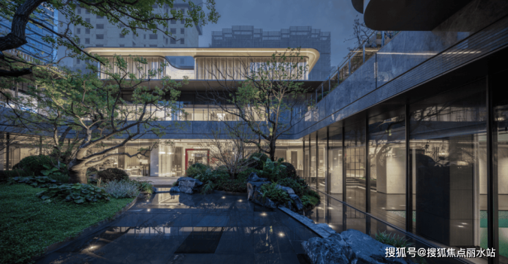 于内,项目打造了下沉式庭院,假山、乌桕林、庭院水系,将度假式的立体景观呈现给业主。
