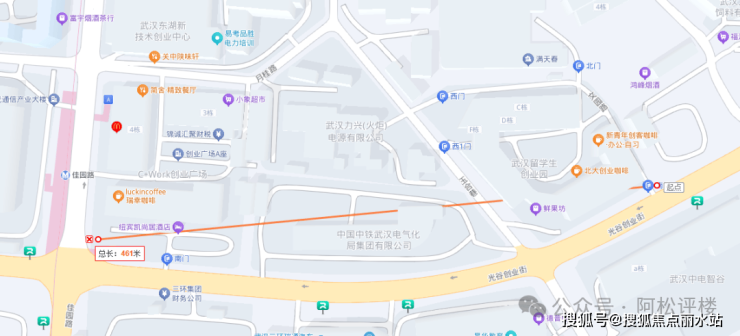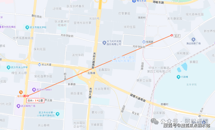 自驾:项目所处的光谷创业街只有双向4车道,关东园路只有双向2车道,估计还有一定的占道。不过,从光谷一路上雄楚大道高架都还算比较近的,北侧不远的珞喻东路也是光谷区域主干道。