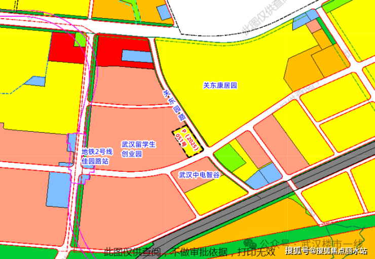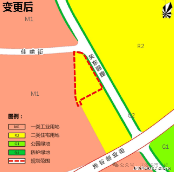 北侧、西侧均为武汉留学生创业园范围(工业用地),北侧地块拟改为住宅用地;