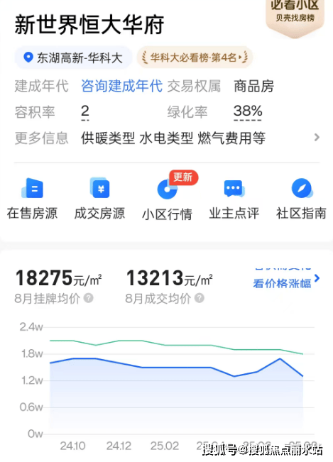 建成超过10年的新世界恒大华府8月成交均价只有1.3万/平出头。