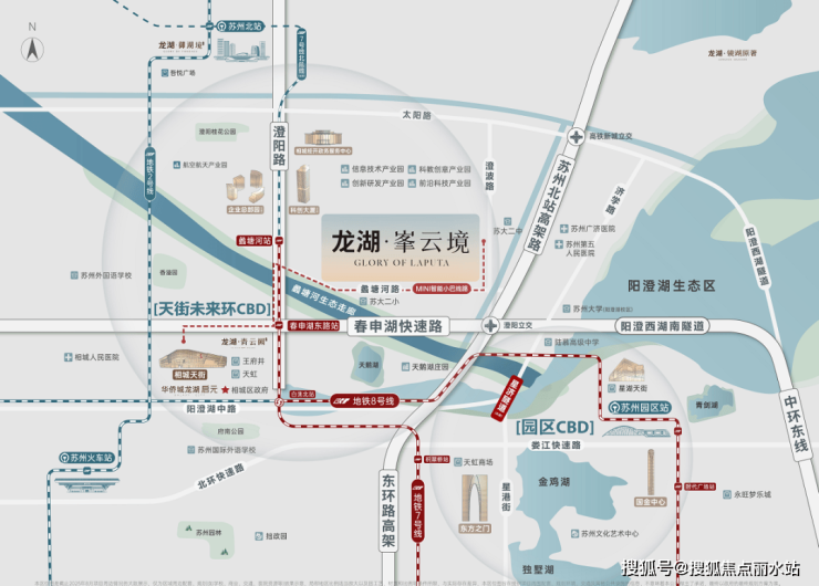咫此近享双轨(地铁7-延长线在建/8号线)、双环(中环北线/苏州北高架路)一隧(阳澄湖星济隧道-在建)等全维立体交通,4站苏州北站,6站抵园区,约10min至龙湖·相城天街,约15min直通高铁站,约22min畅达园区。(信息来源于:高德地图/苏州发布)