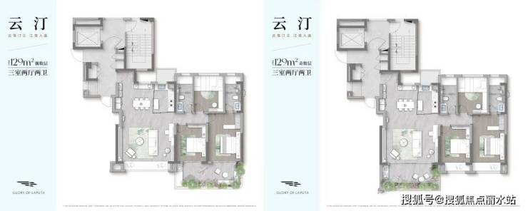 129㎡ 云汀 | 三室两厅两卫 奇数层:使用率约94% 偶数层:使用率约95%