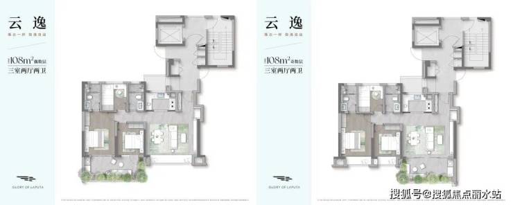 •108㎡ 云逸 | 三室两厅两卫 奇数层:使用率约95% 偶数层:使用率约95%