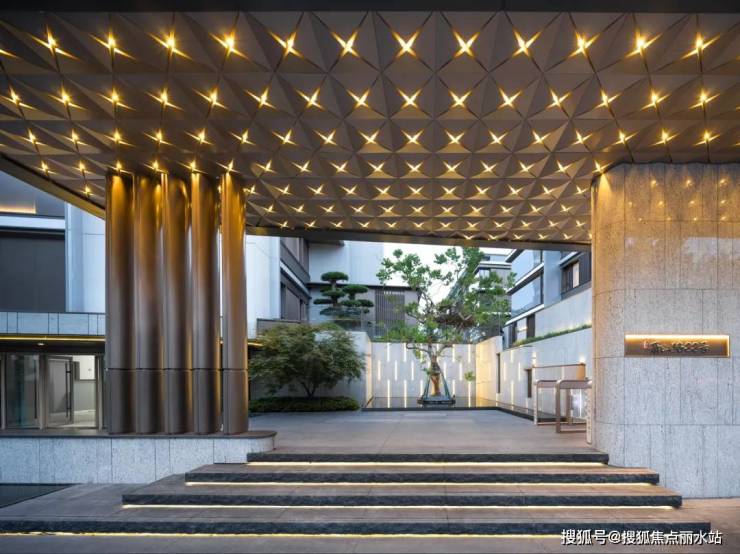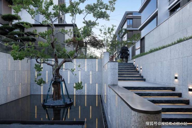 随处可见的地面铺装,都透着用心。小区外广场地面铺的是高端石材夜里雪;归家的台阶铺贴是安哥拉黑石。