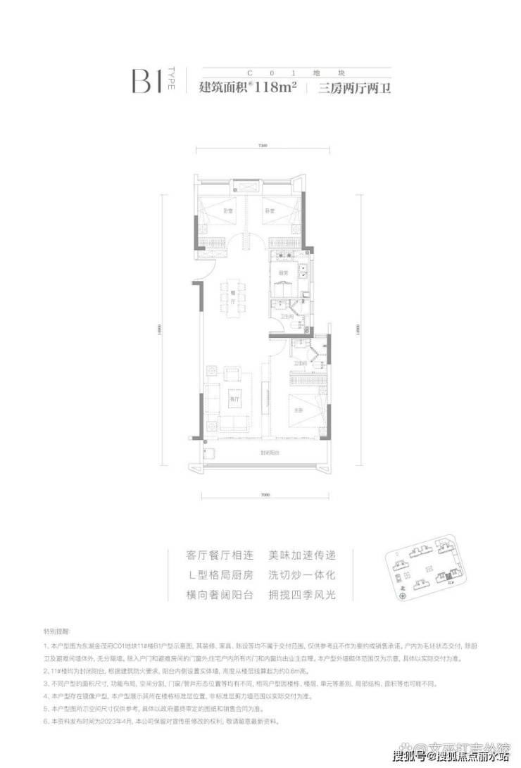 ③面积段较丰富,且清一色三房起步,均为两卫配置,小户型也能同时满足功能性与舒适性。