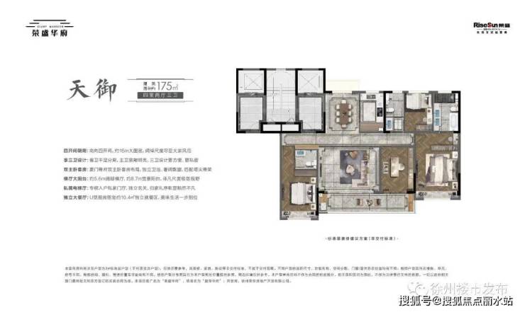 175㎡大平层产品拥有独立电梯入户+内外玄关,双倍储物的组合玄关空间收纳功能强大,不仅增强储物空间,也提升住户归家感;4室2厅3卫户型,整体约体约16m超大面宽,约10.8m进深空间,大气尺度尽显大家风范;约5.6m横厅,约8.7米宽景双阳台,拥有更大化的采光和观景空间景观面;客厅空间灵活多变,一旁的次卧是非承重墙可拆除,可打造成约8.7米面宽的开放式情景客厅,满足休闲、娱乐等一体化,丰富的房间结构有更强可变性与舒适性。该户型采用双套房设计,约30多㎡主卧空间,全明独立卫生间、步入式衣帽间、宽景大飘窗,让家庭成员各自有天地;约10.4㎡独立大餐厅,餐厨相连,超大餐厅空间可容纳8人社交;此外,超高窗墙比、半封闭阳台、超高赠送面积、3.1米稀缺层高,都让荣盛华府的空间尺度更显品质。售楼处电话400-8787-098接通后输入5678【营销中心】