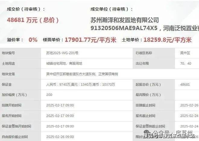 该项目即苏地2025-WG-Z01号地块,今年2月土拍中,由中电建竞得,成交总价约4.87亿,成交楼面价17901元/㎡。
