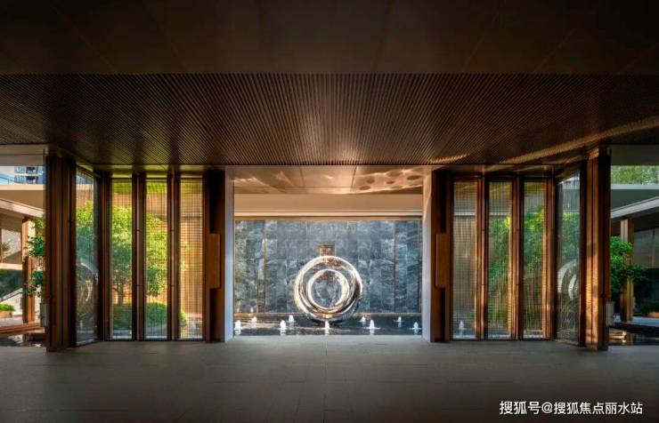 入户处,镜面水院静静铺开。这方水景不仅是过滤城市喧嚣的结界,更是对‘以水为财’的现代诠释。
