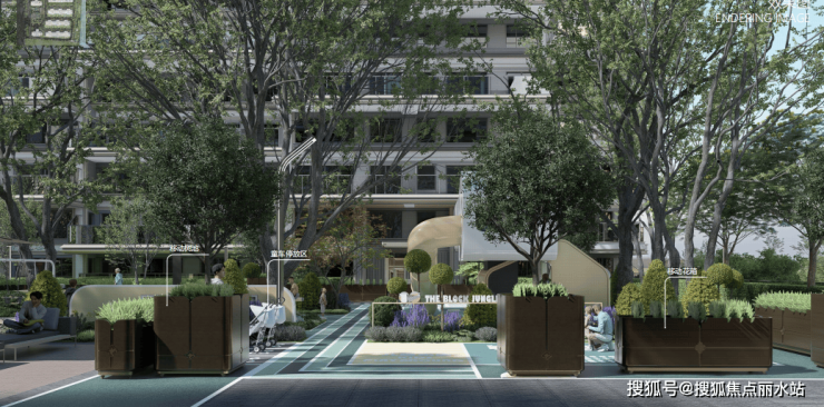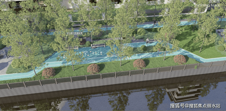 借景古塘河,营造约2600㎡的滨水生活公园,建有绿地草坪、约300米跑道、健身设施等。未来生活于此,晨光中沿河慢跑,微风里铺开野餐垫,树荫下与孩子嬉戏,落日时与家人漫步闲聊。