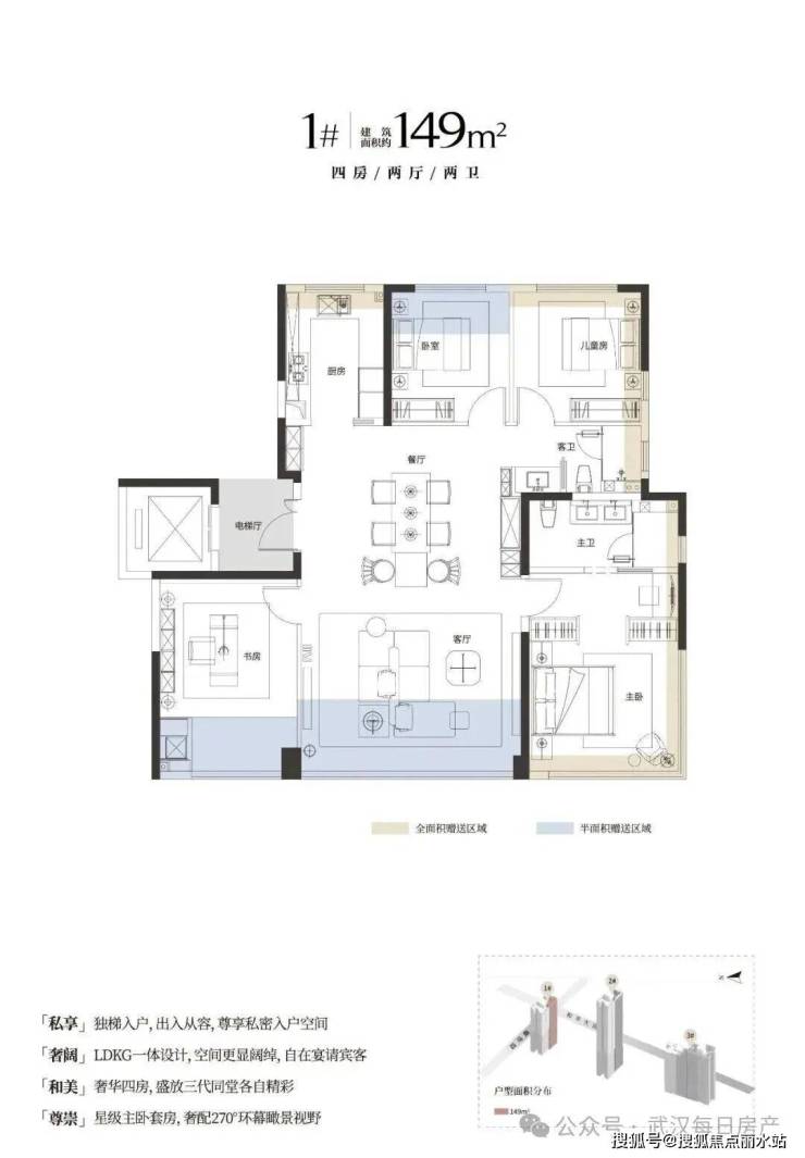 建面约149㎡小户型单价约2.7万-3.3万左右,总价约400-430万