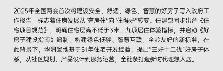 当房地产从“拼规模”转向“拼品质”的时候,华润置地以三十一年经验提炼出“三好十二优”好房子产品体系——这不是冰冷的标准,而是对“如何更好生活”的思考。