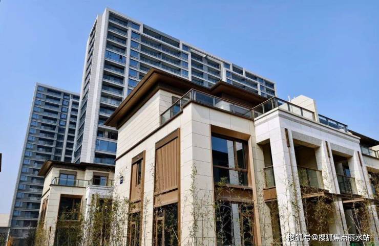 高层现代简约的建筑立面,搭配大面玻璃,颜值颇高;排屋线条简洁流畅,米、褐纯净的色彩搭配,典雅又端庄。
