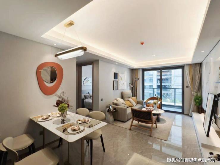 餐客一体的大横厅,配上一个约6米的超大飘窗,不仅空间大气通透,还能借景入室,是近年来深受年轻人喜爱的布局。