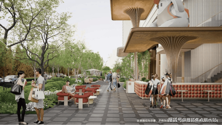 更贴心的是,商街采用“檐下空间”设计,即使下雨天,业主也能在廊下行走,避免淋雨;夜间,商街的暖黄色灯光与海棠花瓣造型的装饰灯亮起,既保证了安全,又营造出“回家即放松”的氛围。一位意向购房者表示:“以前下班回家就是‘赶路人’,现在走在这条街上,会觉得‘生活开始了’。”
