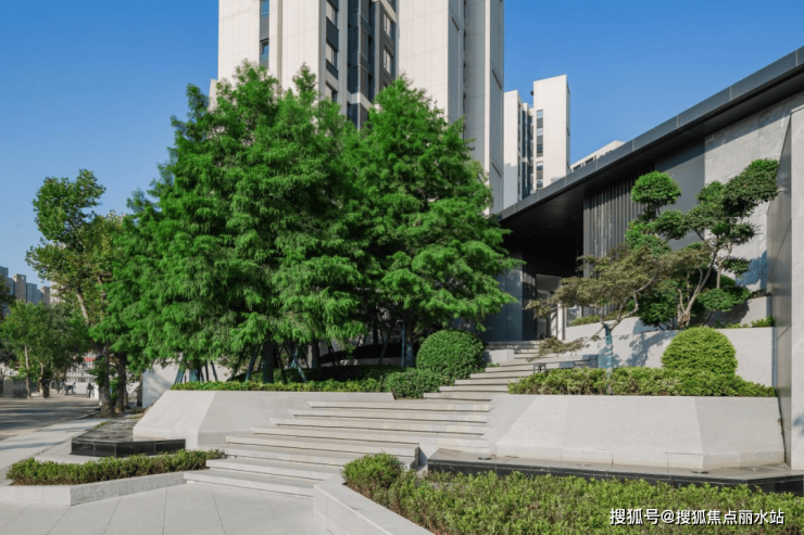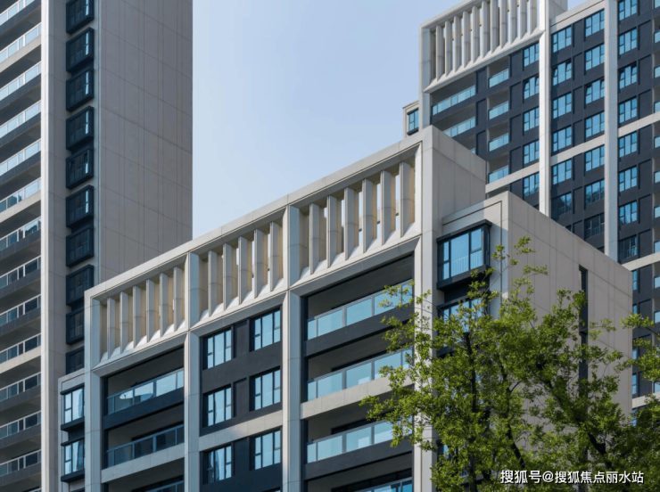 其次和新元素言欢:立面设计采用具有工业风特征的现代精工的立面风格,精致的石材、仿石材的斜面造型与干净的玻璃栏板及内嵌金属凹槽的墙面共同勾勒精致与细腻的现代精工风格。