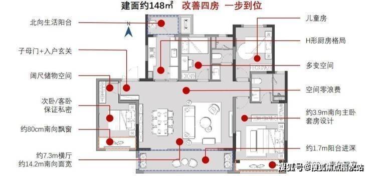 148㎡四室两厅两卫:横厅布局,5.7米景观阳台,总价约300万起