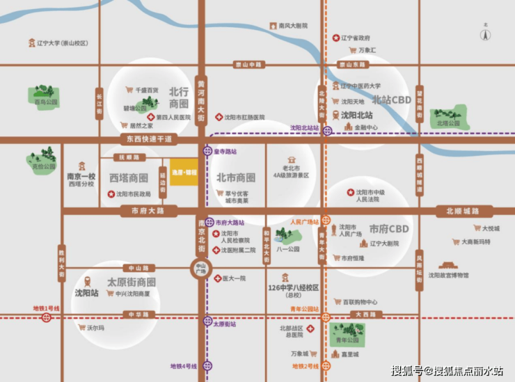 全维生活,即刻兑现:周边中国医科大学第一医院、沈医二院、沈阳市第四人民医院、沈阳市肛肠医院等沈阳顶级医疗资源的安心护航;西塔美食、北市文化街区举步即享,尽揽盛京烟火;万象城、市府恒隆等顶流商圈环伺左右,住在这里,成熟、便捷、繁华的高品质生活圈已在眼前。