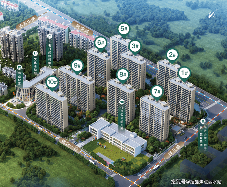 项目立足教育根基,内部规划公立12班幼儿园及3班托儿所,尚贤实验学校(在建中),南临徐州西苑幼儿园、淮海西路中心小学、、徐州一中等重点名校,名校学府环伺,书香润泽。