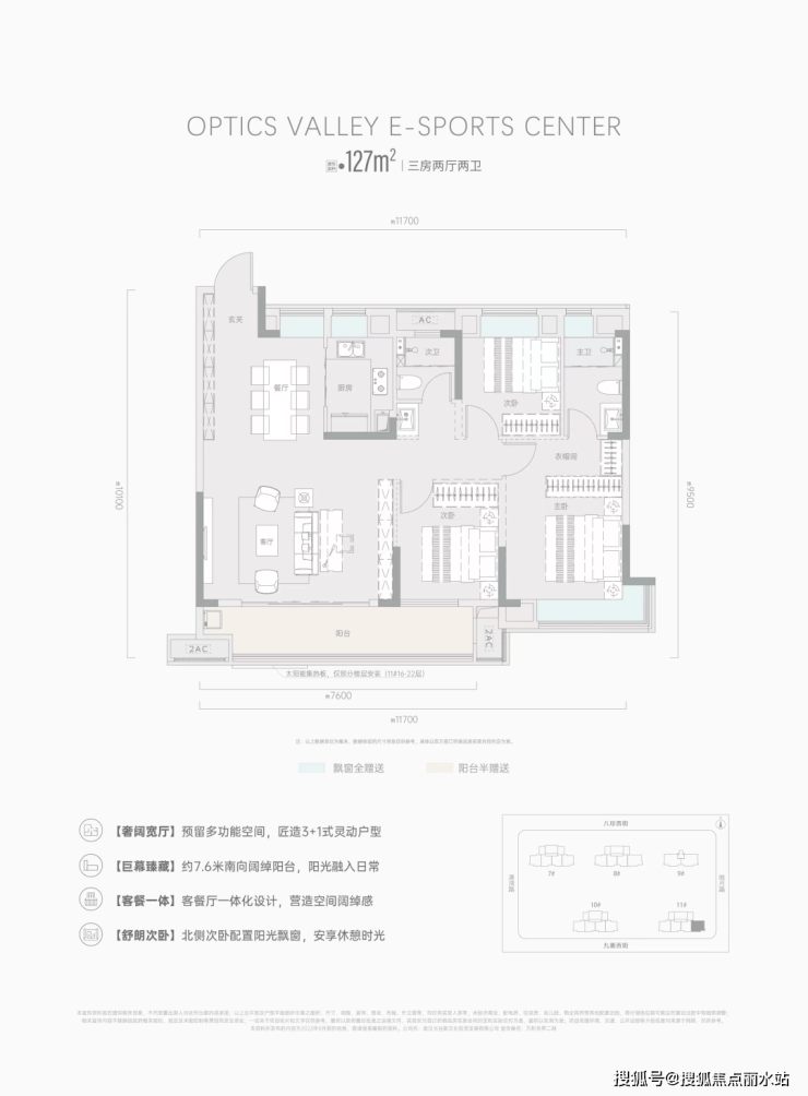 5、产品:小区面积段在98-127平米左右,没有很大的跳跃性,很适合刚需、刚改,保证功能性的同时,总价又不算很高。此外,小区容积率只有2.5,总楼层10-23层,居住舒适度会比较高。