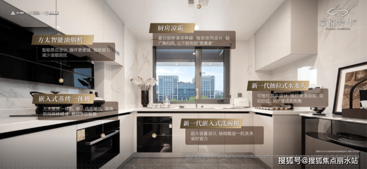 不仅搭载了全屋智能、精装三大件(新风、地暖、中央空调),厨房还配齐了方太三件套(侧式吸油烟机、三眼灶、洗碗机),还有蒸烤一体机、抽拉式水龙头、凉霸和一整面橱柜。