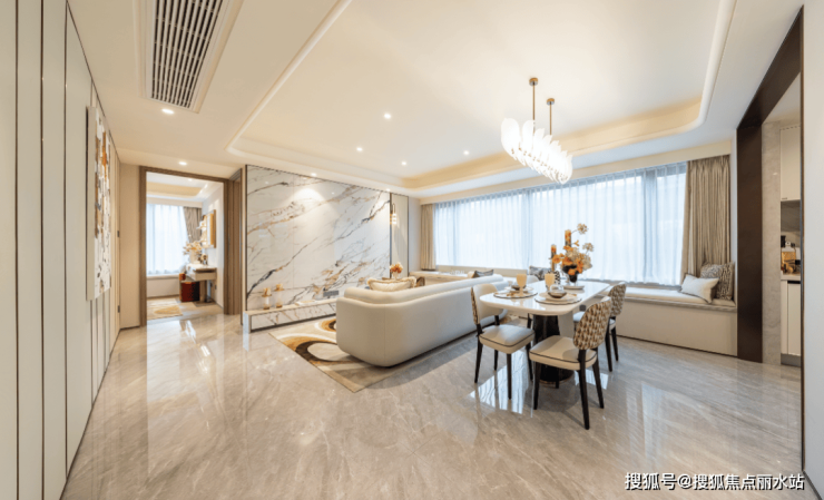就连玄关柜、客厅收纳柜、阳台柜、主卧衣柜以及客厅背景墙、主卧背景墙也都全部纳入交付标准。这样的配置,交房后只需再配点软装,就可以直接入住。
