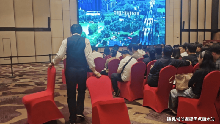 进入开盘宴会厅后,我们看到了工作人员正在进行增加宴会椅的工作。现场购房者众多,原本准备的椅子数量不足以满足现场需求。
