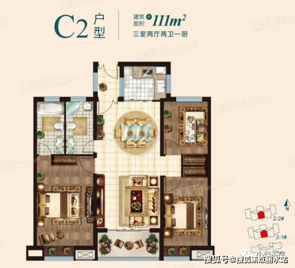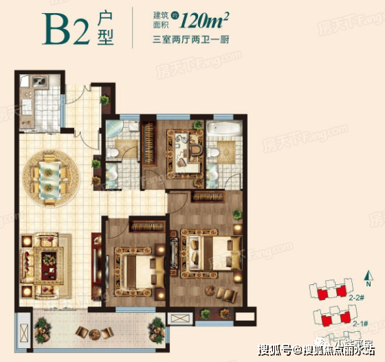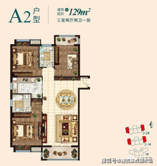2-1号楼共包含3个户型,分别是111平米三房、120平米三房、129平米三房,具体户型图如下:
