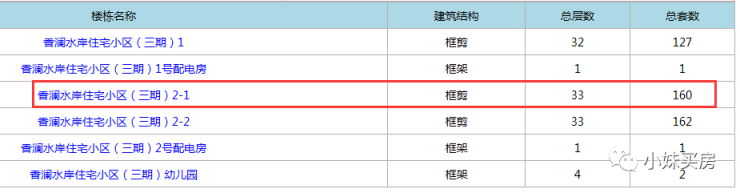 2-1号楼共33层,1个单元,3梯5户布局,1、2楼为架空层及物业用房,共计155套房源。