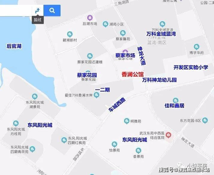 小区位上,香澜公馆西侧是项目一二期,再西侧是东风阳光城,南面是车城西路、东风阳光城;东侧是万科金域蓝湾,北面是蔡家市场、蔡家花园。