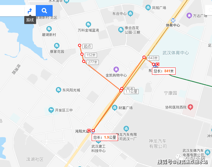 地铁方面,从项目出发,步行约1.9公里左右可达3号线沌阳大道站,2公里左右可达6号线东风公司站,3、6号线均可在附近乘坐,就是步行距离稍远,最好是乘坐公交出来换乘。