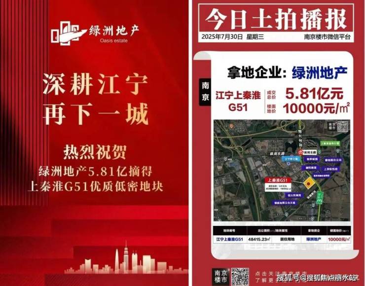 今年7月30日,该地块被盐城绿洲拿下,总价5.81亿元,成交楼面价10000元/㎡。这也是继绿洲云湖悦府、绿洲云湖十里院之后,绿洲地产在江宁打造的又一力作,值得期待!