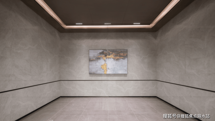 在楼栋大堂,你从经济学的角度打量那一整面大面积岩板墙面,打量吊顶上的高颜质铝板,会觉得它都超越了目前项目的价格段,完全不输有些单价两三万的住宅公区。