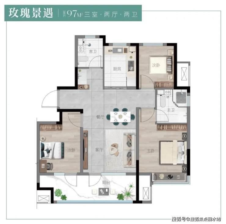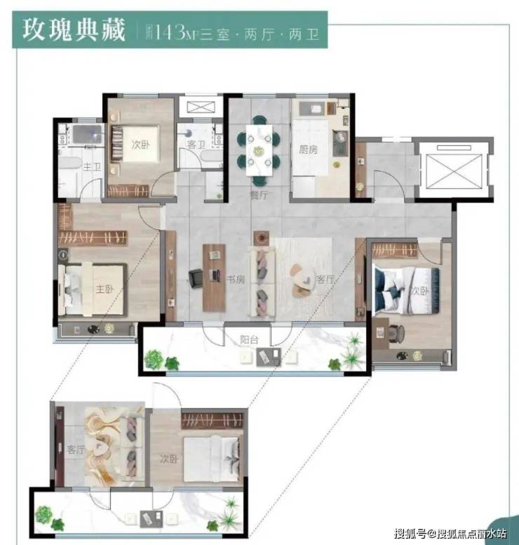 主力户型为97-143㎡全三室两厅两卫,南北通透、动静分区,适合刚需及改善家庭。目前均价约11500元/㎡,显著低于城阳区新房均价14582元/㎡,性价比突出。