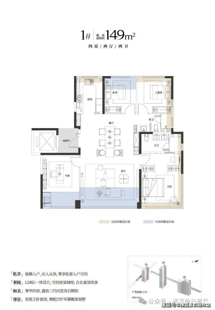 项目一共3栋楼,1号楼28F,2号楼45F,3号楼两个单元,一个28F,一个32F。项目户型为146/153/188㎡。