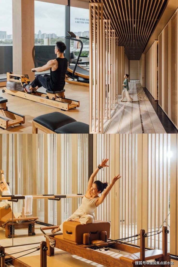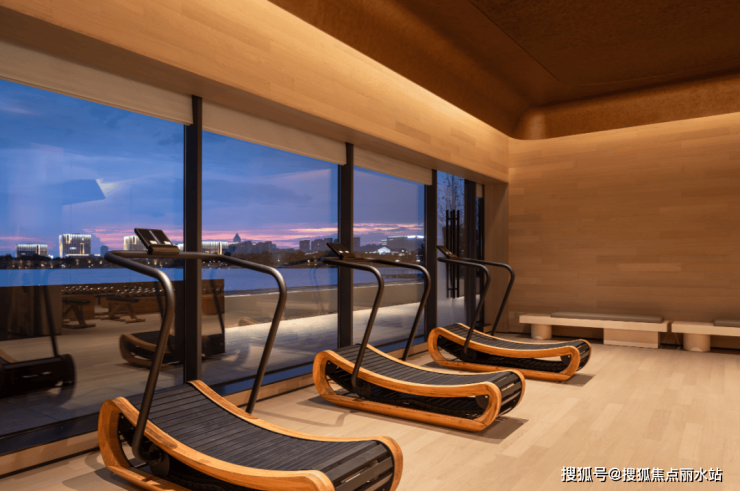 健身房、普拉提室全景落地窗引湖景入室,内部器材全部都是国际高端进口品牌,搭配一对一私教,专业度超越多数商业健身房。