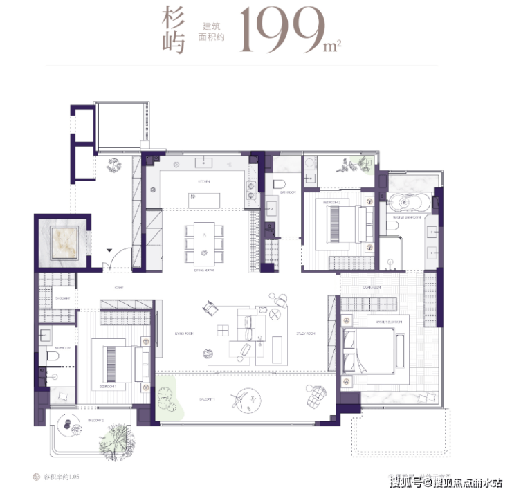 建面约199㎡,南北双阳台+270°观景视角+约8.1米超大横厅+户户空中花园。