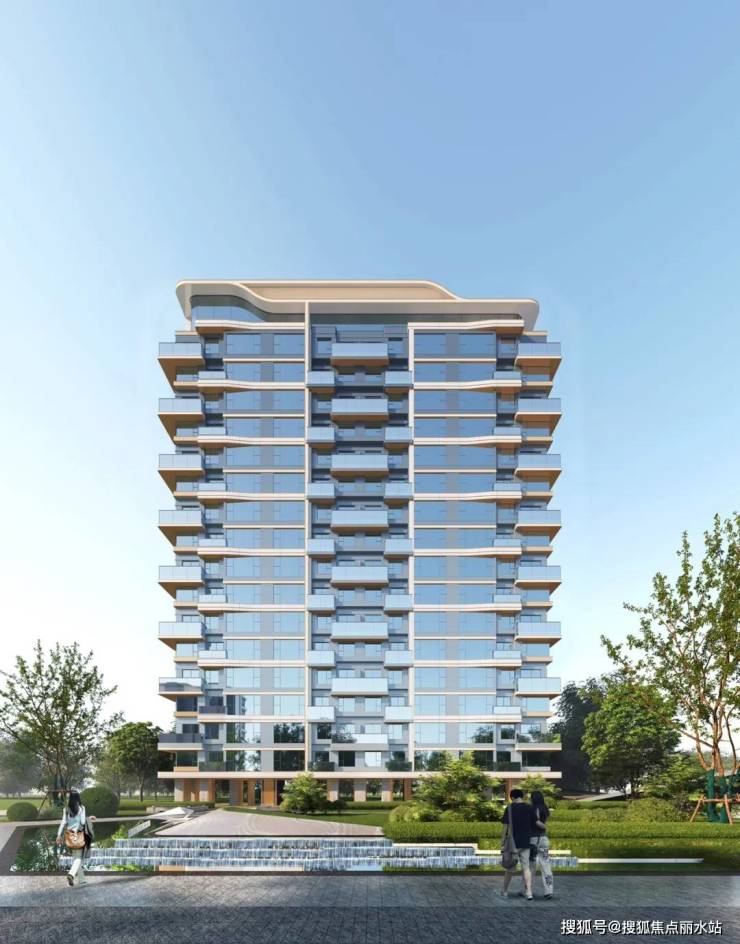 4、高颜值立面。项目采用大面积玻璃幕墙,窗体占比非常高,外立面为铝板材质,颜值出众。露台采用错层布局,并且边户的露台是270°拐角露台,视野一绝。