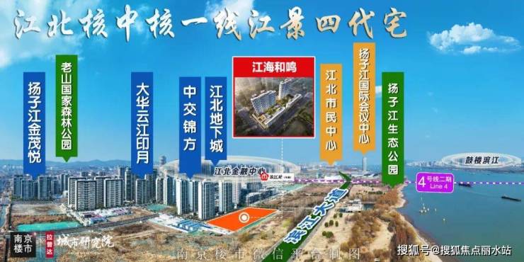1、一线江景资源。江海和鸣不远处就是江北市民中心和扬子江国际会议中心,占据烫金地段。楼盘正对长江和扬子江生态公园,距离长江岸线约300米,可以近距离拥抱江景资源。