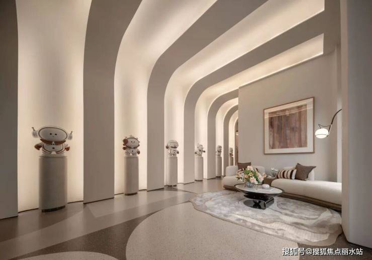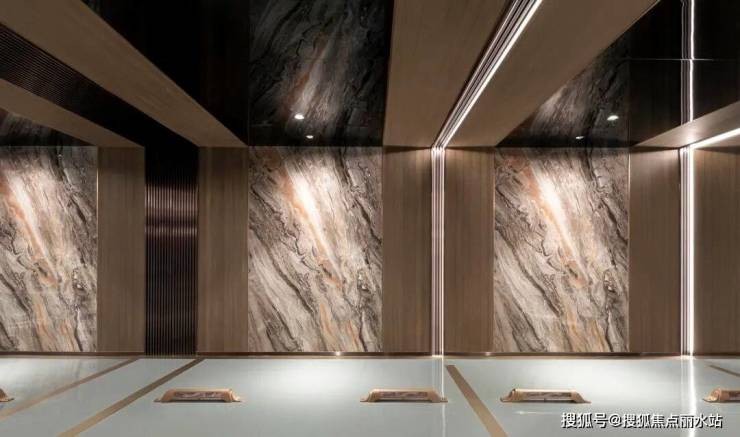 地下大堂则以透光云石为引,铺陈柔和光韵;结合大师级艺术屏风、定制木纹金属墙面与同系石材,勾勒出沉稳而富有诗意的归家序曲。