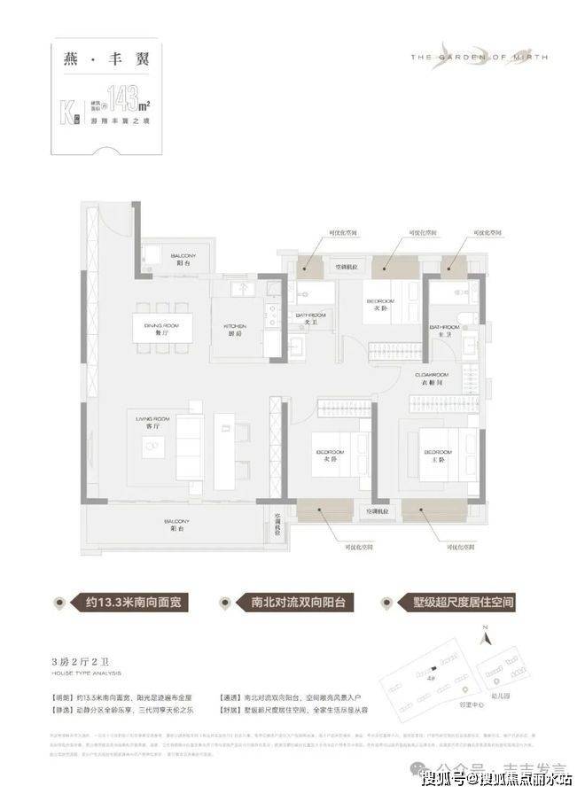 6.全优户型设计,最高约84%高实得率,全屋飘窗赠送,客厅无承重墙设计,让空间拓展更安全,客餐厨一体化布局,大横厅,盛纳一家人享受欢声笑语。