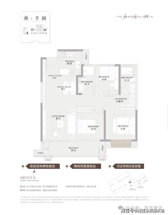 ◆C户型-105㎡-3房2厅2卫◆