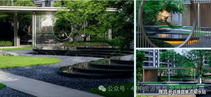 景观设计由国内豪宅专家绿城设计院进行设计,以“漂浮的都会绿岛”为景观设计理念,以滨水为题、以岛屿为场,融入滨河城市肌理,构建高绿量、高格调、高品质的隐奢度假庭园艺术。整体打造“一带一环两轴两园多节点”的景观结构,营造归家、交流、成长、运动四大健康生活模块,以满足社区全龄业主社交、生活、游玩需要的生活场景。